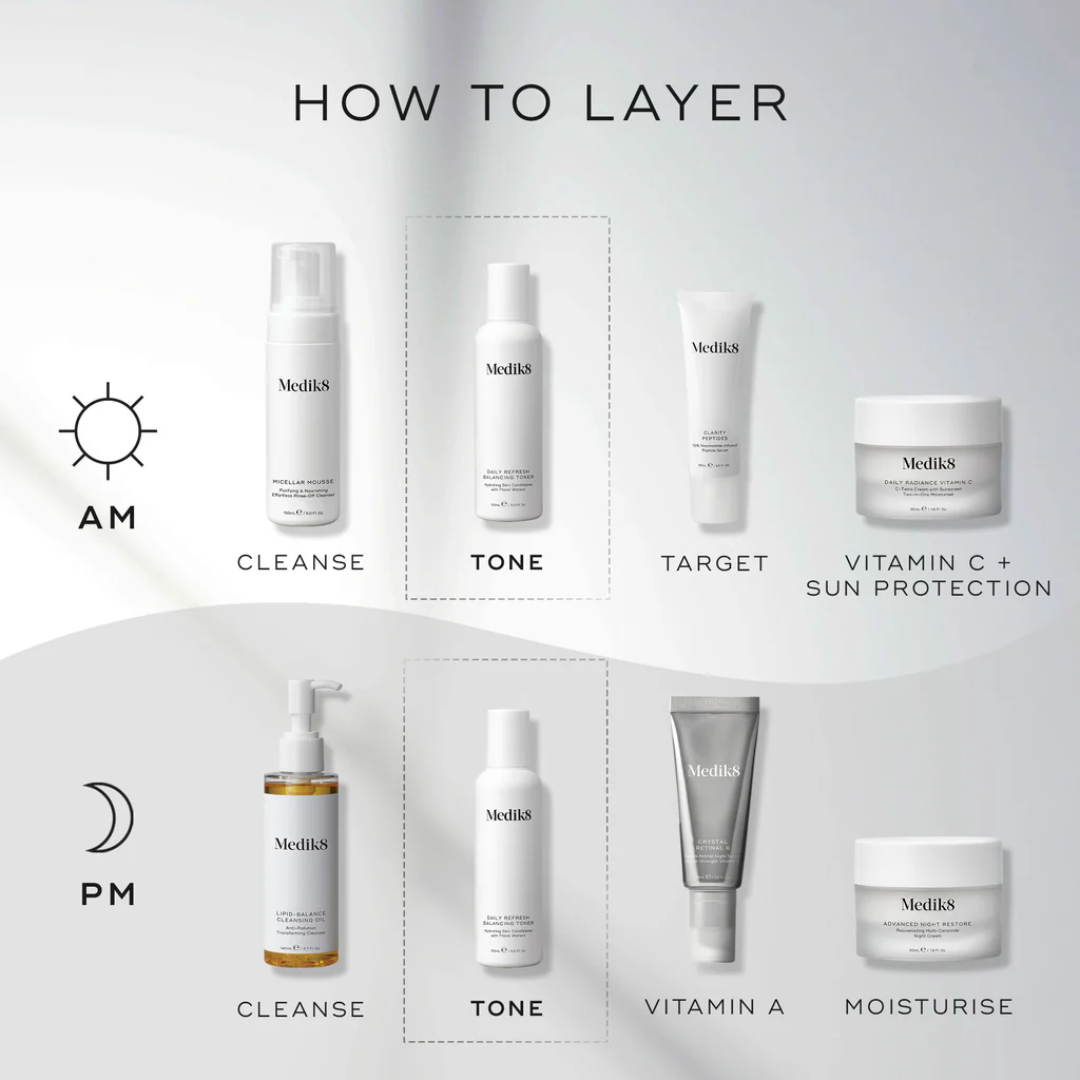 Daily Refresh Balancing Toner by Medik8 is a professional-grade balancing toner designed to support healthier-looking skin with consistent use. It fits seamlessly into a simple routine and helps improve the look of texture, comfort, and radiance.